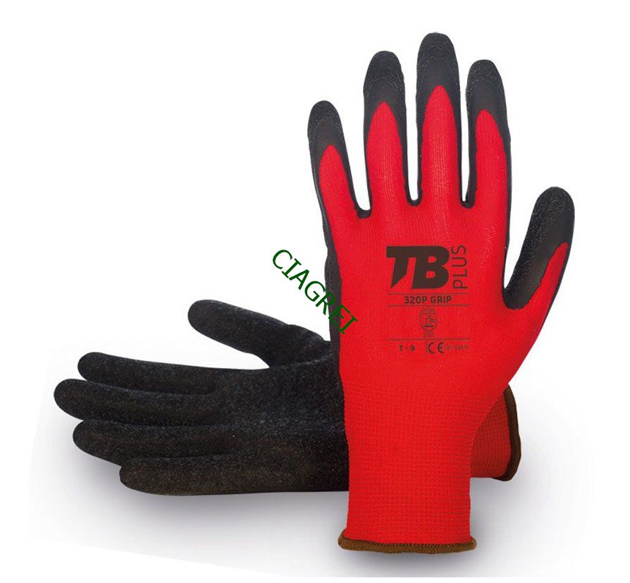 GUANTE poliester rojo latex negro 320P T8 (paquete 10 unidades)